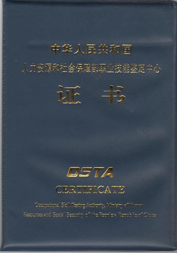 1. 本證書由中華人民共和國(guó)勞動(dòng)和社會(huì)保障部職業(yè)技能鑒定中心印制并頒發(fā)。