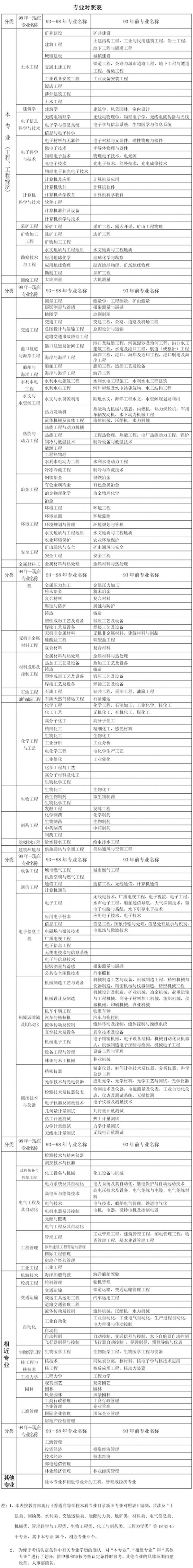 專業對照表