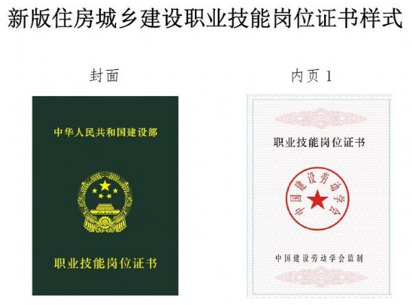 新版住房城鄉建設職業技能崗位證書