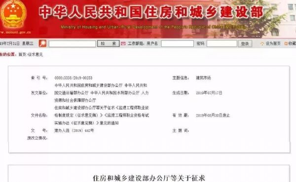近日,住房和城鄉建設部辦公廳、人力資源和社會保障部辦公廳、交通運輸部辦公廳、水利部辦公廳聯合下發《監理工程師職業資格制度規定(征求意見稿)》和《監理工程師職業資格考試實施辦法(征求意見稿)》。