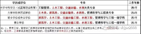 (二)具有土木類、建筑類、交通運輸類、水利類、管理科學與工程類專業大學本科學歷或學位,從事工程監理業務工作滿4年;