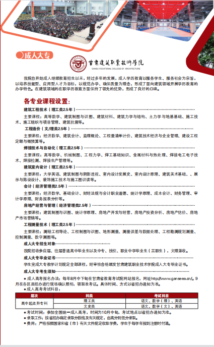 甘肅建筑職業技術學院成人高等教育2021年招生簡章