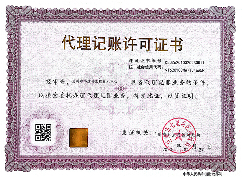 代理記賬許可證書