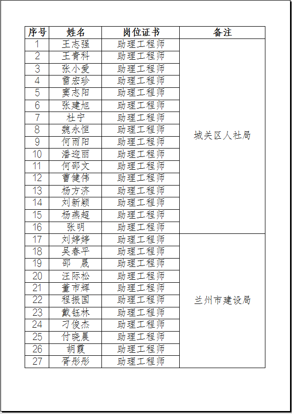 蘭州市住房和城鄉建設局助理工程師評審合格人員名單公示(第二批)048
