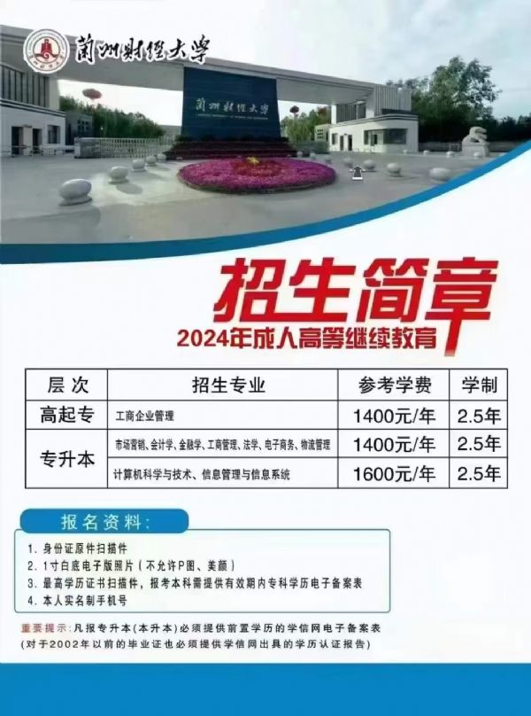 蘭州財經大學繼續教育學院是學校負責統籌協調、組織管理高等學歷繼續教育、非學歷教育培訓的機構, 兼具辦學和管理職能。經過多年的發展,逐步構建了辦學形式多樣化、辦學層次多元化、專業設置科學化、 教學管理統一化、管理手段信息化、區域分布合理化的繼續教育辦學體系, 曾多次被原國內貿易部、省教育 廳、省考試院、職業與成人教育協會評為先進單位。學院現有省內教學站點 16 個,學歷繼續教育在校生 1.3 萬余人。